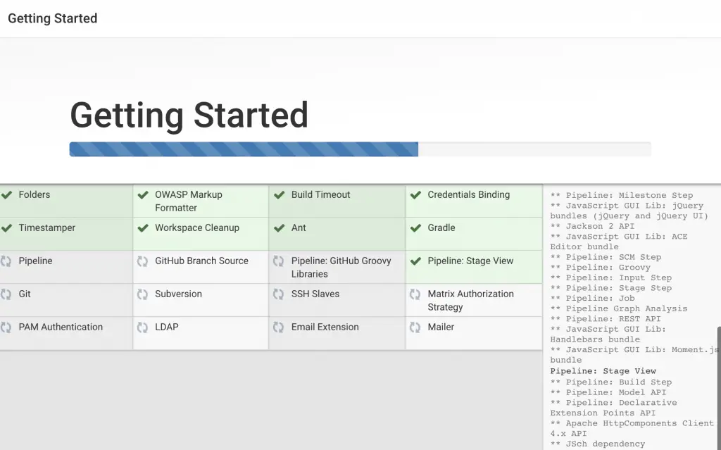We’ll click the Install suggested plugins option, which will immediately begin the installation process.