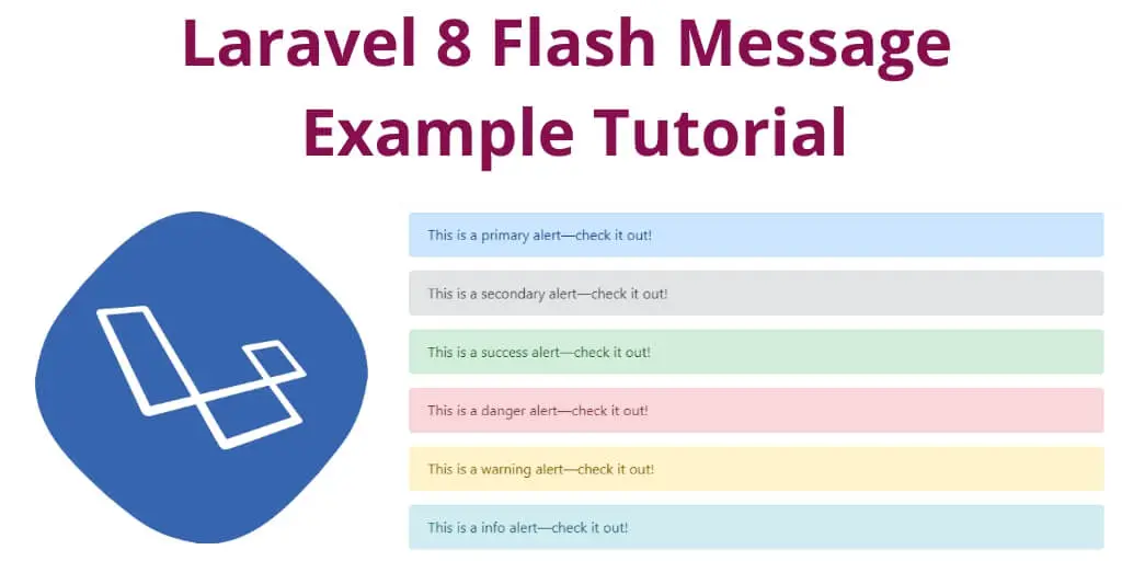 This laravel 8 flash message example tutorial will add several ways to give a flash message like redirect with success message, redirect with an error message, redirect with a warning message, and redirect with info message. And as well as, use a bootstrap flash alert layout that way it displays a pretty layout.